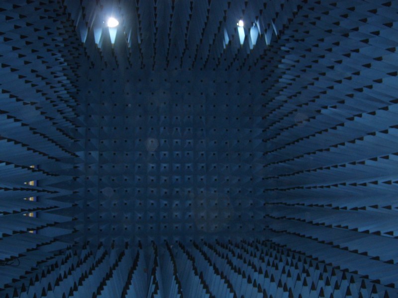 微波暗室,亦称无回波室、吸波室、电波暗室。当电磁波入射到墙面、天棚、地面时,绝大部分电磁波被吸收,而透射、反射极少。微波也有光的某些特性,借助光学暗室的含义,故取名为微波暗室。 微波暗室是采用吸波材料SA作和金属屏蔽体组建的特殊房间,它提供人为空旷的“自由空间”条件。在暗室内做天线、雷达等无线通讯产品和电子产品测试可以免受杂波干扰,提高被测设备的测试精度和效率。随着电子技术的日益发展,微波暗室被更多的人了解和应用。微波暗室就是用吸波材料来制造一个封闭空间,这样就可在暗室内制造出一个纯净的电磁环境,以方便排除外界电磁干扰。微波暗室材料可以是一切吸波材料,主要材料是聚氨酯吸波海绵SA(高频使用),另外测试电子产品电磁兼容性时,由于频率过低也会采用铁氧体吸波材料。 微波暗室的主要工作原理是根据电磁波在介质中从低磁导向高磁导方向传播的规律,利用高磁导率吸波材料引导电磁波,通过共振,大量吸收电磁波的辐射能量,再通过耦合把电磁波的能量转变成热能。